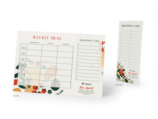 Choose from a variety of customizable notepad designs, including weekly planners, checklists, shopping lists, and menu meal planners, to showcase your brand.